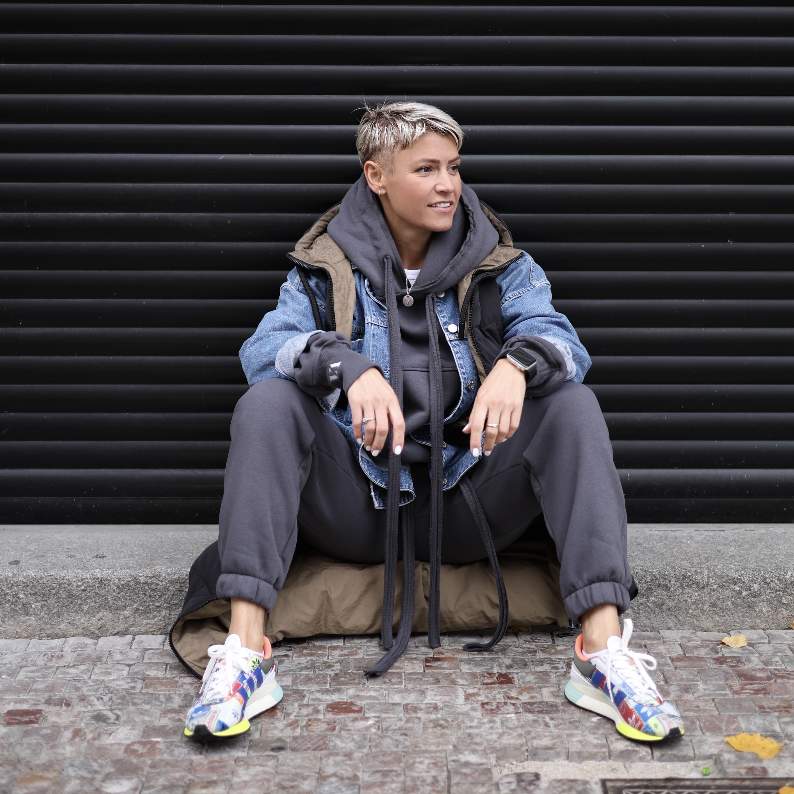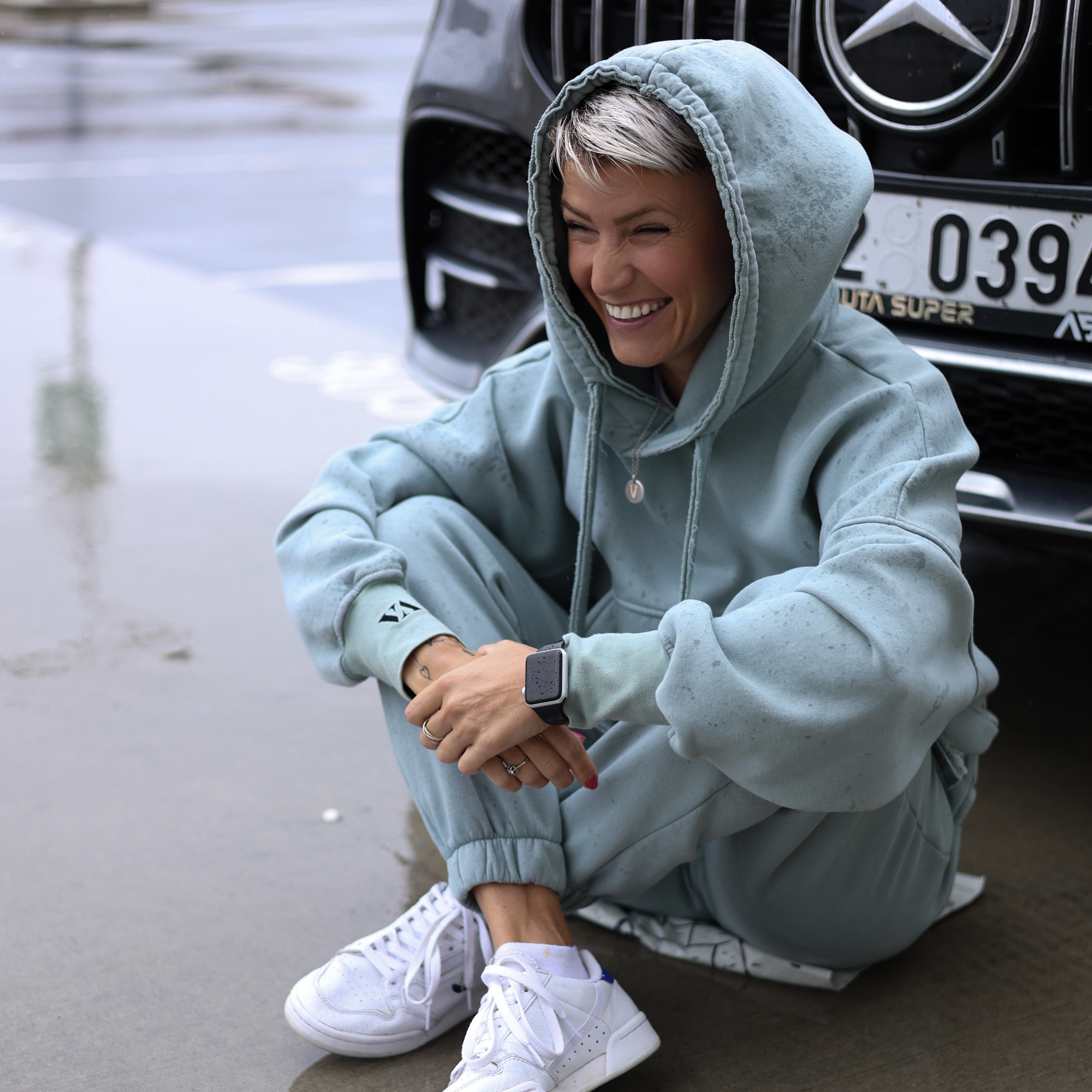 onesize, oversize v pase na gumu prodloužený rukáv s gumičkou na konci a vyšitým logem velká dvojitá kapuce s nezačištěným lemem klokanka vyšité velké logo VA na zádech...